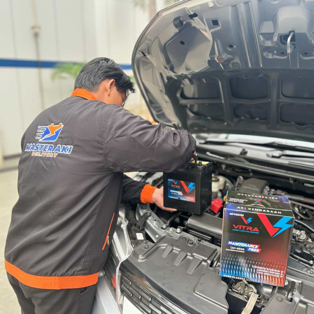 Master Aki menyediakan aki mobil asli dengan garansi resmi. Diantar dan dipasang oleh teknisi profesional dan berpengalaman, didukung layanan Gratis Antar & Pasang langsung ke lokasi Anda, serta program Tukar Tambah Aki Lama hingga Rp500.000.